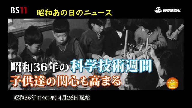 昭和36年の科学技術週間、ソ連(当時)の有人衛星第一号の成功以来子供達 の科学に対する関心が高まっている様子をお伝えします。