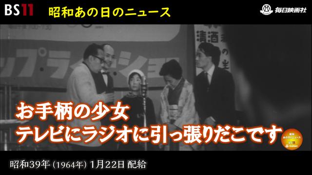 昭和35年から劇場で上映された「毎日ニュース」から懐かしい昭和の風景を選りすぐりでお届けします。BS11、毎日映画社がセレクトしたあの日、あの頃の昭和史の数々をお楽しみください。