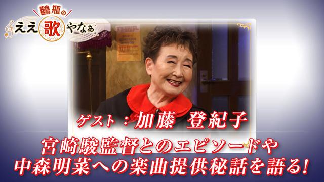 加藤登紀子さんに、宮崎駿監督との「紅の豚」主題歌誕生の貴重なエピソードや、中森明菜さんへの「難破船」楽曲提供秘話を語っていただきます。