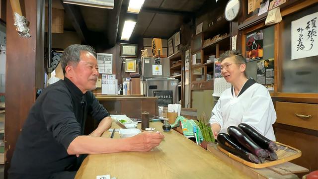 旭川を代表する居酒屋「独酌 三四郎」。創業昭和21年の老舗で、太田さんの著書にも度々登場します。まずは焼燗でいただく「純米酒 風のささやき」。定番のお通しは酢大豆。食べ物のない時代に客はこれだけで呑んだとか。〆にしんと茹でアスパラは、風味豊かで豪快な北海の鮮味。そして豚モツ。炙ったモツに深みのあるタレが絡んだ、創業以来の伝統の味。包み込むような女将のもてなしと相まって、風雪を乗り越えた老舗ならではの懐の深さを堪能しました。