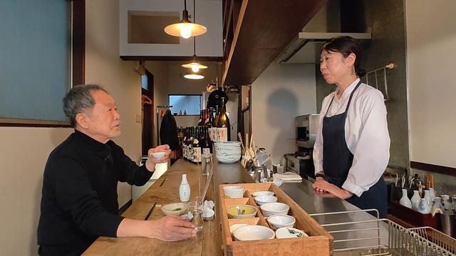お待ちかねの居酒屋巡り。駅から15分ほど、どこか古民家のようなひっそりと佇んでいる「あめつち」。カウンター数席のみで、騒がしさがない空間。まずは「純米酒 会津娘」の燗で。初めの一品は、九条ねぎのぬた。寒さで甘みを増した九条ネギは、まさに旬の味覚。そこに太田さん好物の、牡蠣のオイル漬けが登場。牡蠣の濃厚なふくらみと旨味が凝縮され、純米酒とも相性抜群。こだわりと丁寧な技が光る料理の数々。心落ちつく空間で、至福の時間に浸りました。