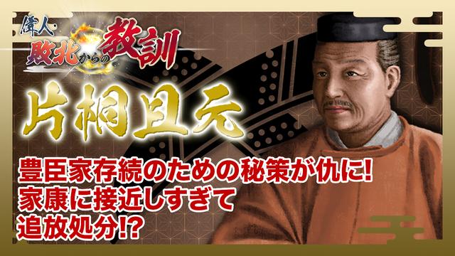 豊臣家の滅亡を見届けた家老・片桐且元の敗北から明日を生きるための教訓を探る。1556年、近江国に生まれた且元は浅井長政に仕えた後、羽柴秀吉の家臣となる。且元がその名を轟かせたのは賤ヶ岳の戦い。加藤清正や福島正則らと共に賤ヶ岳の七本槍の一人に数えられる活躍をし、秀吉の勝利に貢献したのだ。その後、秀吉の天下統一事業を陰で支えた且元は、関ヶ原の戦いの後、豊臣家の家老を任される。