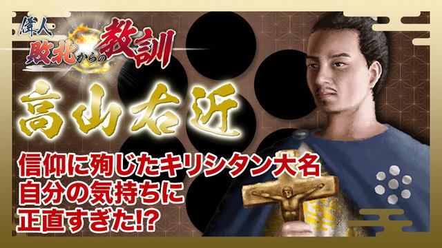 戦乱の世を信仰と共に生きたキリシタン大名・高山右近の敗北から現代に通じる教訓を探る。1552年頃、摂津国に生まれた右近は12歳頃、父がキリスト教に入信したのを機に家族や家臣と共に洗礼を受ける。22歳頃、家督を譲られ、高槻城主になると、自らが整備した城下町に教会を建て、キリスト教の布教に尽力。その後、織田信長に仕え、安土城下にセミナリヨと呼ばれる神学校を造り、キリスト教のさらなる発展を目指した。