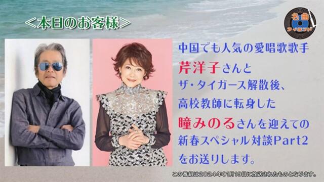 <使用楽曲>「出発のほかに何がある」ザ・タイガース解散ライブ/「青春の旅」「四季の歌」芹洋子/「アイ・アンダースタンド」ハーマンズ・ハーミッツ<ゲスト>芹洋子・瞳みのる<ナビゲーター>島敏光<アシスタント>Mami<インフォメーション>いつも通り