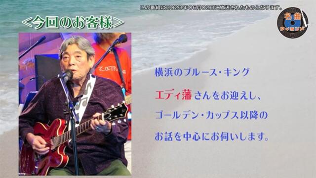 前半は過去放送映像の編集版。香港での楽器入手の話に始まり≪ファナティクス≫を組んでの活動、そして≪ゴールデン・カップス≫に名を変える前の≪グループ&アイ≫のメンバー集めのエピソードを披露。 後半は関係者コメントとして先ずはバックコーラスの三松亜美が登場。実質、エディ藩生涯最後の録音となった三松亜美歌唱による「丘の上のエンジェル」を紹介。この曲と「横浜ホンキートンク・ブルース」「バック・トゥ・チャイナタウン」の3曲は「エディ藩・横浜3部作」と呼ばれている。更には病床でエディ藩が練習していたクリスマスソングの話も公開。 続いては数々のアーチストによりカバーされたエディ藩の作品「横浜ホンキートンク・ブルース」を一番最初に吹き込んだ藤竜也のレコーディング・ディレクターだった蛎崎広柾が登場。藤竜也盤のレコーディングに際し、エディ藩がギタリストとして柳ジョージを推薦したという意外な事実を証言。エディ藩のセルフカバー盤の発売は藤竜也盤の発売から暫く経ってからの事であった。 <使用楽曲> 「身も心も」竜童組/「丘の上のエンジェル」三松亜美/「横浜ホンキートンク・ブルース」松田優作&クリエーションwithエディ藩 【出演】■ナビゲーター:島敏光■アシスタント:Mami ■ゲスト:エディ藩、三松亜美、蛎崎広柾 ※この番組は、2025年12月19日に放送されたものとなります。