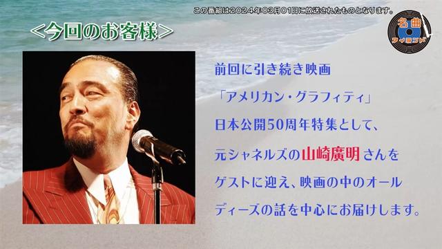 ゲストの元シャネルズ・山崎廣明は、音楽のみならずライフスタイルにも多大な影響を与えてくれた「アメグラ」の映画の中の細部の魅力を紹介。